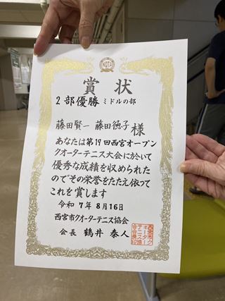 藤田賢一・藤田徳子ペアが、ミドルの部 2部優勝を果たしました。